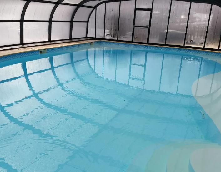 Situation : tout à côté des terrains de basket, Piscine dans le grand chalet des Hameau du Puy.